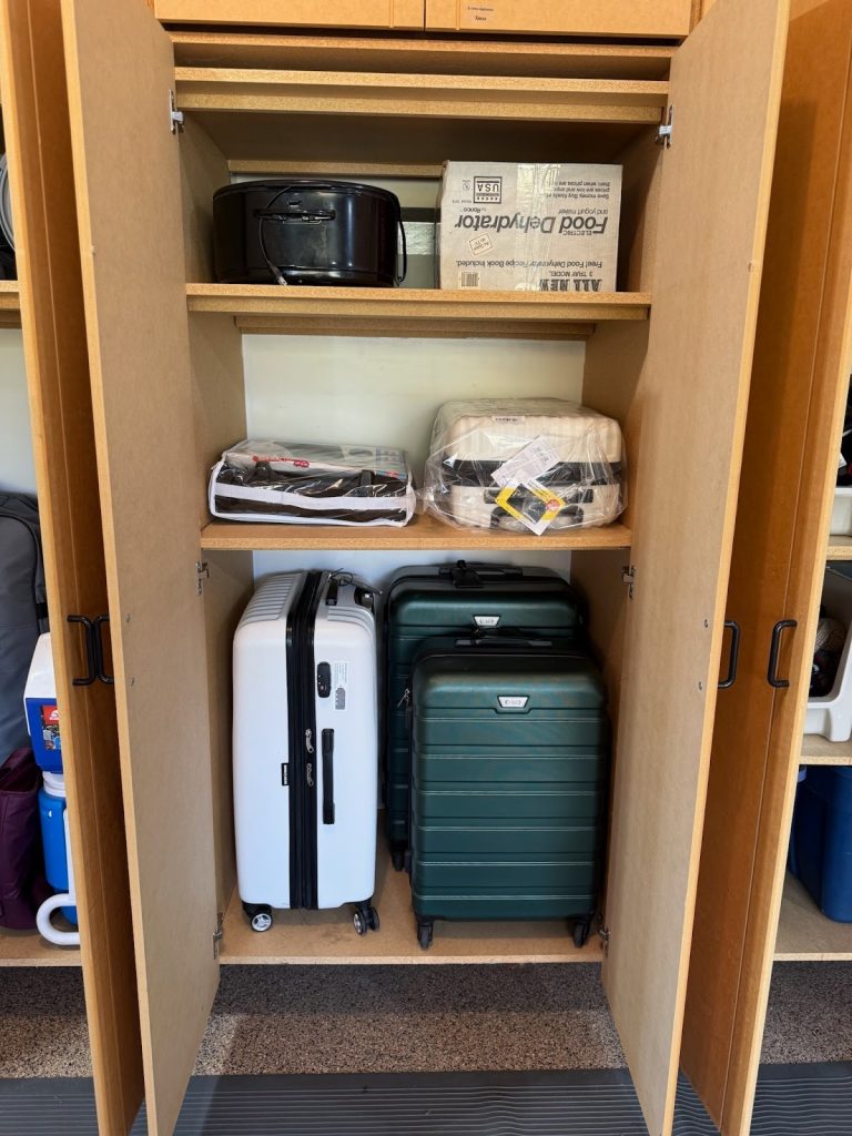 Trips often involve gear that lives outside the main part of the house: suitcases, backpacks, outdoor gear, or seasonal equipment.